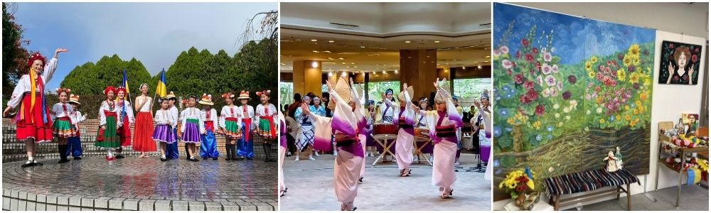在住ウクライナ人や避難者によるコーナー。パネル展示や、ワークショップ等を実施しました。