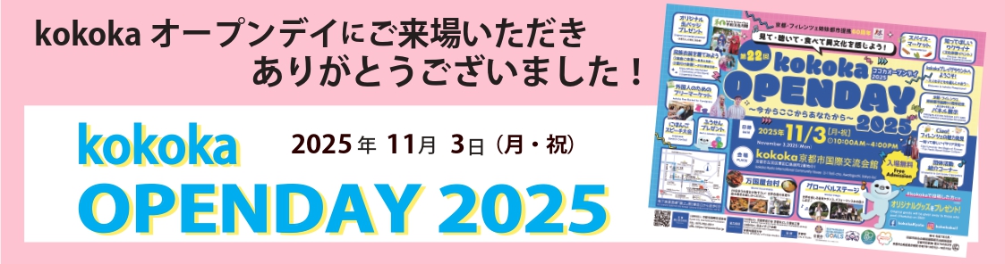 | 開催場所 | kokoka京都市国際交流会館 (京都市左京区粟田口鳥居町2-1) |